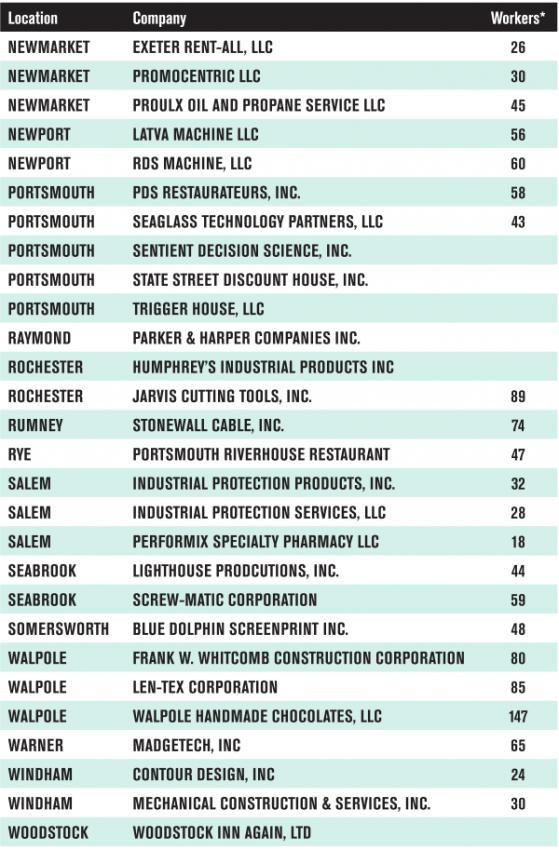 The others are Jewell Instruments, a Manchester manufacturer and distributor of sensors, meters and avionic instrumentation for industries ranging from aerospace to medical. It employs 104 people. People’s Linen Service, a Keene company that employs 162, was the fifth.