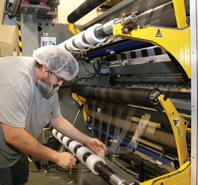 The new converting lines are built to process two rolls of plastic film in tandem, producing either the same or different products and doubling the output of the old lines. “Three lines are the equivalent of nine old lines, and they’re much faster,” he said.