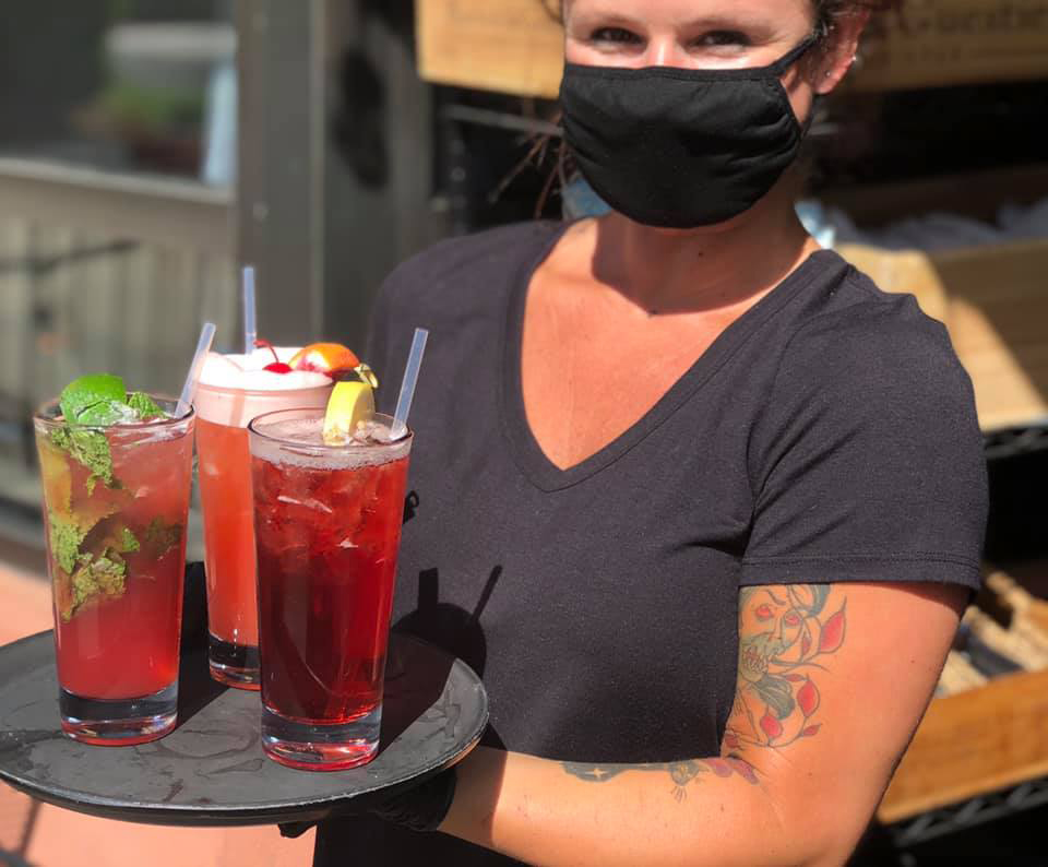 A masked waitress serves patrons outside Luca’s Mediterranean Café in Keene. The new regulations will give owner Gianluca Paris the option to add two to three additional tables. (Facebook Photo)
