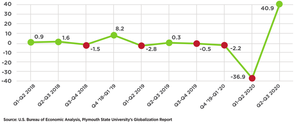 New Hampshire Real GDP Quarterly Percentage Change, 2018-2020