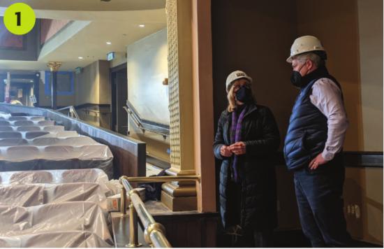 1. In mid-February, U.S. Senator Maggie Hassan visited downtown Laconia businesses with Laconia Mayor Andrew Hosmer. The two of them are pictured at the Colonial Theater, which is undergoing a $15 million revitalization project that is expected to bolster the downtown economy. The senator also visited Wayfarer Coffee Roasters and Spyglass Eyewear, where she spoke to the owners about how their businesses have adapted to the ongoing Covid-19 pandemic.