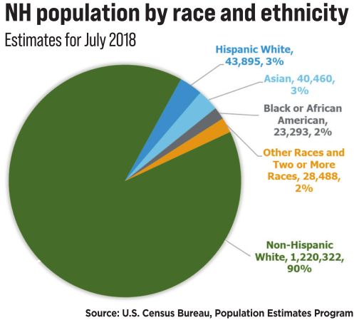 The southern tier of the state is not the only area where diversity is increasing, however. According to 2019 estimates from the American Community Survey, about 90% of Portsmouth residents are now non-Hispanic whites, compared to about 94% in 2010. In Concord, the non-Hispanic white population has shifted from 94% in 2010 to 88% in 2019.