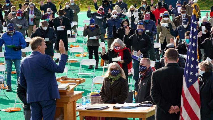 Alliance. Here, Gov. Chris Sununu swears in lawmakers at an outdoor