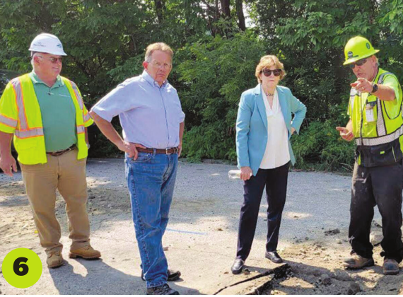 6. U.S. Sen. Jeanne Shaheen, D-NH, visited Berlin last month to discuss infrastructure, the city’s inflow and infiltration project, with city officials and project contractors. Also pictured are Mike Perreault, project engineer with Wright-Pierce, Berlin Mayor Paul Grenier and Craig Babbage with Cross Excavation.