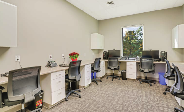 This model, which Nickerson developed and specializes in, features an anchor primary-care provider surrounded by shared specialty services. The various providers share a central waiting room. It’s a format Nickerson has refined since his first project, Castle Commons, with Tom Buchanan, CEO of DMC Primary Care, in 2012. “It just snowballed from there,” Nickerson says.