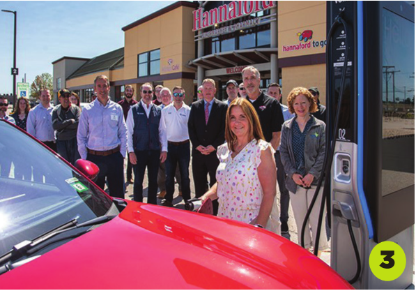 3. Hannaford Supermarkets has teamed up with Volta Charging, the industry leader in electric vehicle (EV) charging stations, to bring clean EV charging energy to New Hampshire, beginning with the Hannaford store located at 201 John E Devine Drive in Manchester. They are the first stations introduced to New Hampshire, with plans to expand to 31 stores throughout the Northeast. Pictured here: Lisa Lessard, Hannaford Supermarkets John E Devine store manager, with Hannaford and Volta Company leaders delivering the ceremonial “first charge.”