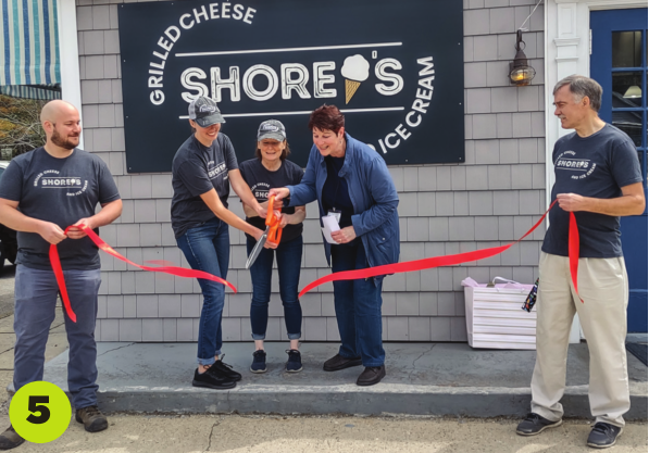 5. A ribbon-cutting ceremony was held to celebrate the opening of Shore’s Ice Cream & Grilled Cheese in Franklin. Pictured from left to right: Anthony Damiani, Laura Damiani, Sharon Shorey, Mayor Jo Brown and David Shorey.
