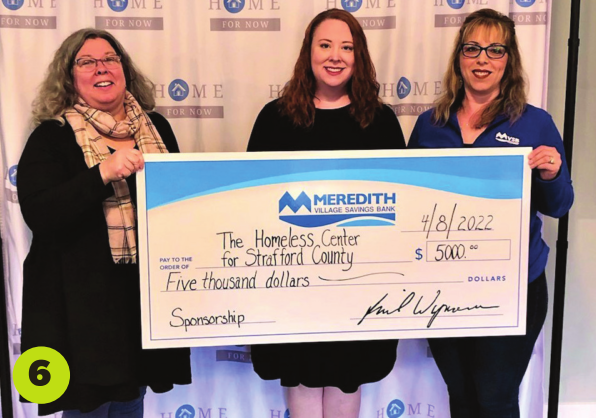 6. Meredith Village Savings Bank recently sponsored the Homeless Center for Strafford County’s “Home for Now” event on June 2 with a $5,000 donation. The event recognized the organization’s success of their new building and their work to house families in need. Pictured, from right: Jolene Whitehead, MVSB Rochester branch and business development manager; Melissa Clark, Rochester branch services supervisor; and Tracy Hardekopf, executive director of the Homeless Center for Strafford County.