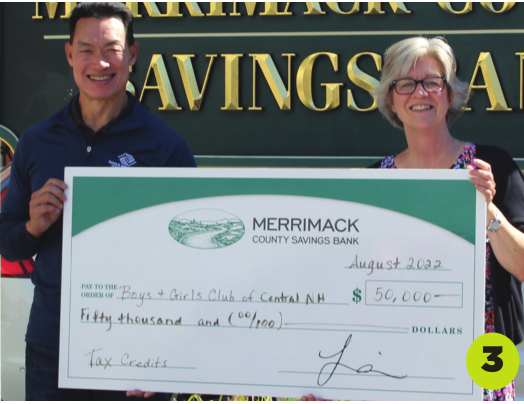 3. Merrimack County Savings Bank (The Merrimack) purchased $50,000 in tax credits from the NH Community Development Finance Authority to help the Boys & Girls Clubs of Central New Hampshire transform the Penacook Community Center into a 10,000-square-foot child care and youth development facility. Pictured, from left: Chris Emond, executive director of the Boys and Girls Club of Central NH, and Linda Lorden, president of The Merrimack.