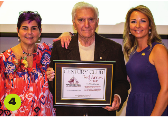 4. The owners of the Red Arrow Diner were presented with the Manchester Historic Association Century Club Award in honor of the diner’s 100th year in business during the 30th annual Historic Preservation Awards on Sept. 8. Carol Lawrence purchased the Red Arrow Diner in 1987 and now shares ownership with George Lawrence, vice president, and Amanda Wihby, chief operations officer. They manage approximately 175 employees between the Red Arrow Diner locations in Manchester, Concord, Londonderry and Nashua.