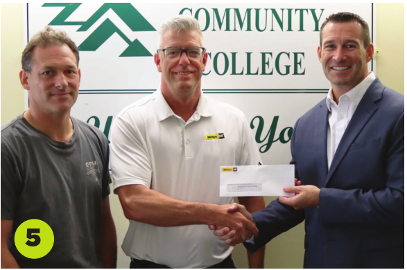 5. Caterpillar Inc. has donated $25,000 to White Mountains Community College in support of the college’s future advanced technology building, which broke ground on Sept. 14. Funds from Caterpillar Inc. and Milton CAT, which pledged $200,000 to the project in March, will support construction, equipment, infrastructure and program development for the building at the Littleton Academic Center. The expansion is designed to help the college meet workforce needs in the North Country by growing high-demand programs, improving access, increasing regional recruitment and deepening community integration. Left to right: Marc Pouliot, WMCC diesel heavy equipment technology program professor, Chris Robichaud, Milton CAT recruiter, and Chuck Lloyd, WMCC president.
