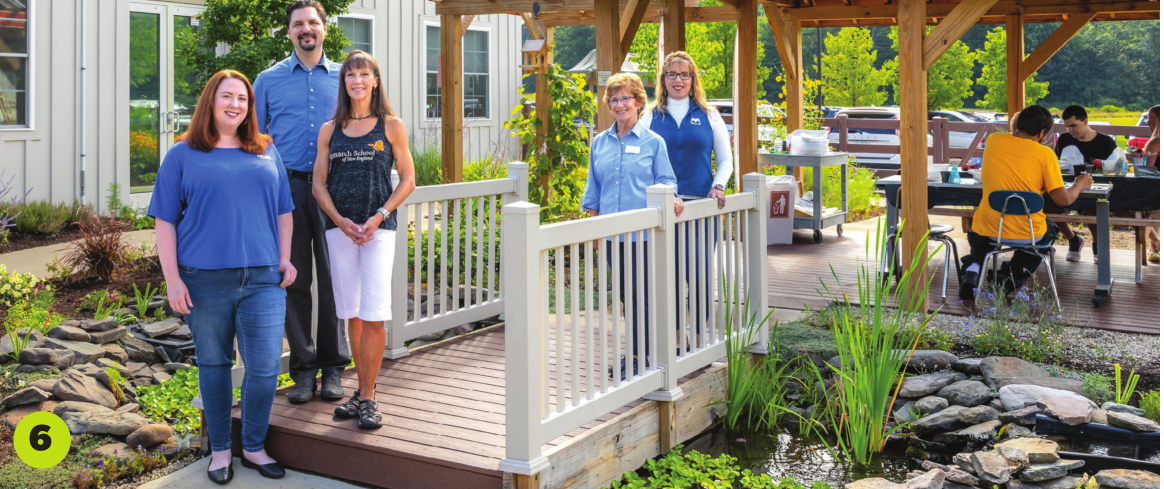 6. Meredith Village Savings Bank (MVSB) has given a $5,000 sponsorship to the Monarch School of New England for the Horticultural Therapy and Gardening Program, which provides unique opportunities for students to learn, grow and reach their full potential in a nature-based setting. From left: Melissa Clark, MVSB branch services supervisor; Jim Carrigan, MVSB regional vice president, branch and business development manager; Diane Bessey, Monarch School of New England executive director; Kathy Perry, horticultural therapist; and Jolene Whitehead, MVSB branch and business development manager.
