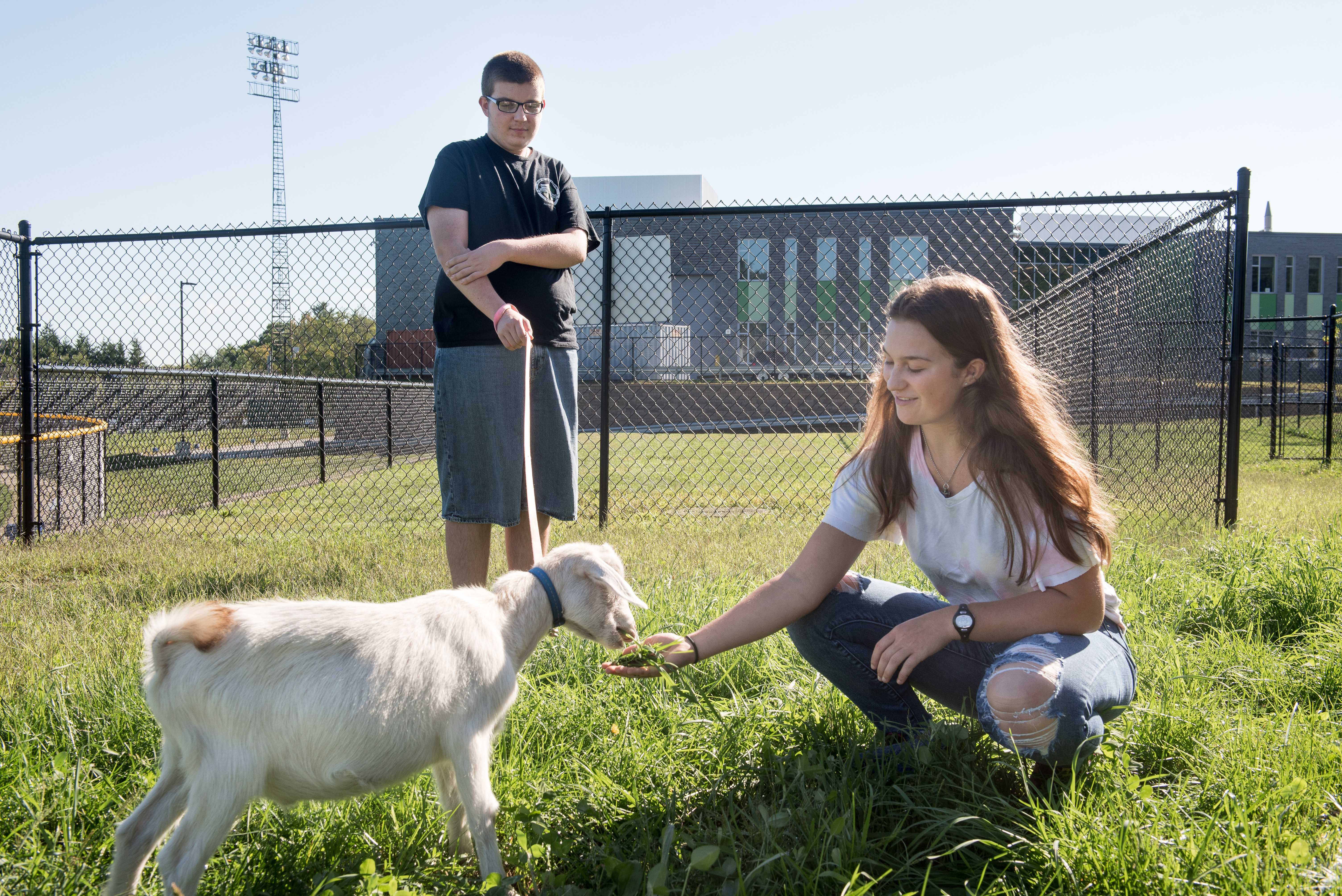 “I’m still sorting out exactly what I want to do,” Nadyan said after changing the food for a goat in The Barn. “Animals are an important part of my life. The program has also given me confidence in public speaking and working in groups. Before I started the animal science program I liked to work by myself and was quiet. Now I’ll talk in front of anyone, and I feel ready for the National Guard and beyond.”