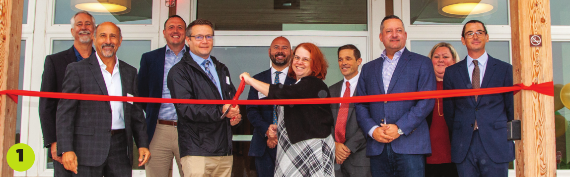1. Real estate developer Dakota Partners recently celebrated the grand opening of Friars Court in Hudson, the first and only family-affordable housing community that includes two buildings with 81 one- and two-bedroom units, plus a community building for all residents to use. Pictured, from left: Marc Daigle, Dakota principal/CEO; Roberto Arista, Dakota principal/president; Nate Bondini, TD Bank VP, senior loan officer; Brian Groth, Hudson town planner; Jeremy Vieira, Dakota development director; Kara Roy, chairperson, Town of Hudson board of selectmen; Robert Dapice, executive director/CEO, NH Housing; Robert Charest, SVP equity production, Boston Financial; Stacey Fuller, Maloney Properties senior property manager; and Sean Donnelly, Dakota construction project manager.