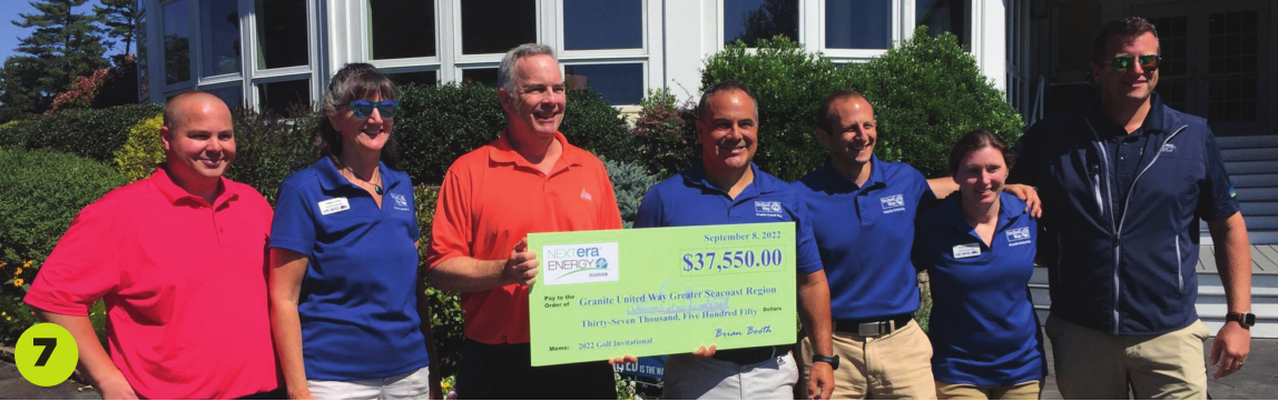 7. NextEra Energy Seabrook LLC raised $37,550 at their 32nd annual Seabrook Station Golf Tournament to benefit Granite United Way’s mission and programs. Pictured left to right: Josh Greene, Seabrook senior engineer and tournament organizer; Linda Lorrey, director of individual engagement, Granite United Way; Brian Booth, Seabrook site vice president; Patrick Tufts, president/CEO, Granite United Way; Colby Gamester, board member, Granite United Way; Kerry Folkins, corporate engagement director, Granite United Way; and Kyle Barry, Seabrook operations director.