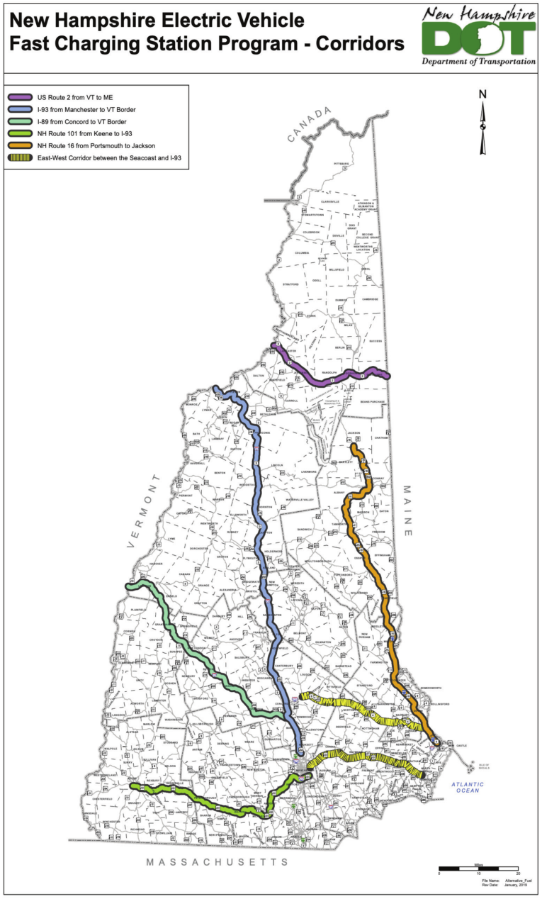Awarding the contracts is based on responses to a NH Department of Environmental Services request for proposals to provide electric vehicle supply equipment to sites along the state’s most traveled corridors, as follows: