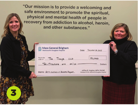 3. Wentworth-Douglass Hospital has awarded a $10,000 grant to Dover’s Triangle Club to support a new art and wellness program for those in recovery or struggling with substance use disorder. The Triangle Club serves more than 2,500 people annually, offering grief and peer support to over 55 groups each week. The Club’s Arts & Wellness in Recovery program offers free weekly meditation, yoga, drawing and painting classes.
