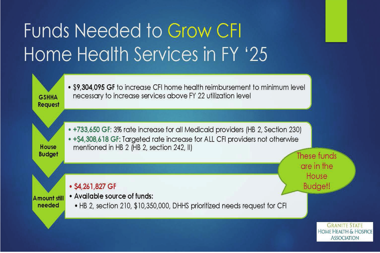 She said the added funding contained in the budget plan approved by the NH House “is the minimum increase needed to just keep our doors open beyond July 1. It is not nearly enough to increase wages to attract a larger workforce and solve the caregiver shortage crisis.”