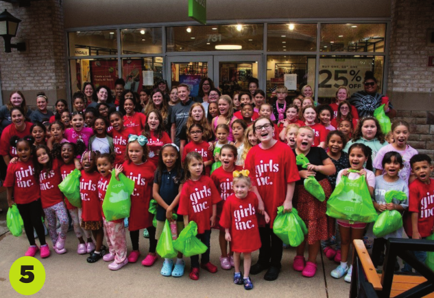 5. Brady Sullivan Properties helped 175 girls from Girls Inc. of New Hampshire programs in Nashua and Manchester receive a new pair of Crocs shoes. Pictured: 85 girls from the Girls Inc. Nashua center show off their new Crocs with Brady Sullivan Properties staff members outside the Crocs store at the Merrimack Premium Outlets.