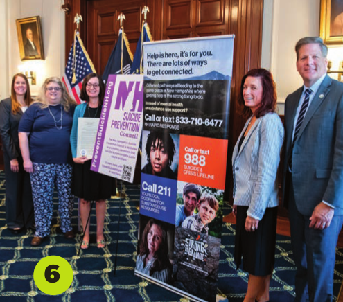 6. In advance of New Hampshire’s and National Suicide Prevention Week, Sept. 10-16, the NH Suicide Prevention Council hosted a press conference with Gov. Chris Sununu and council representatives from the American Foundation for Suicide Prevention, NAMI New Hampshire, and the New Hampshire Department of Health and Human Services to discuss statewide efforts and resources geared to prevent suicide. Speakers highlighted the community impact of NH Rapid Response/988, the launch of Strong As Granite, a new public awareness campaign, and the NH Suicide Prevention Council’s new website, offering a statewide resource for suicide prevention.