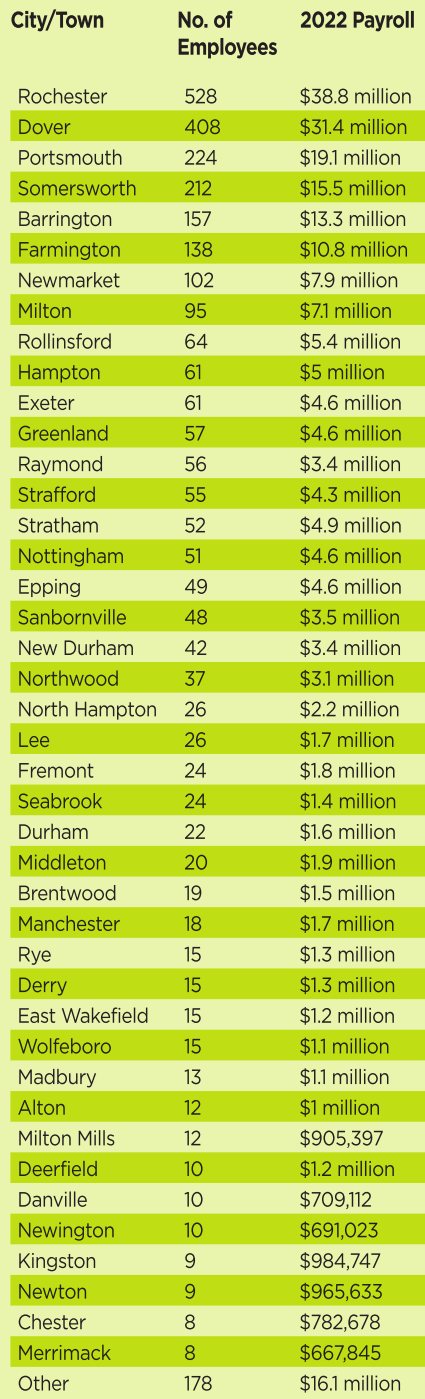 By state, while New Hampshire’s total payroll was $239 million among 2,899 employees, Maine came in at $372 million and 4,101 employees, while Massachusetts tallied $24 million and 169 employees.