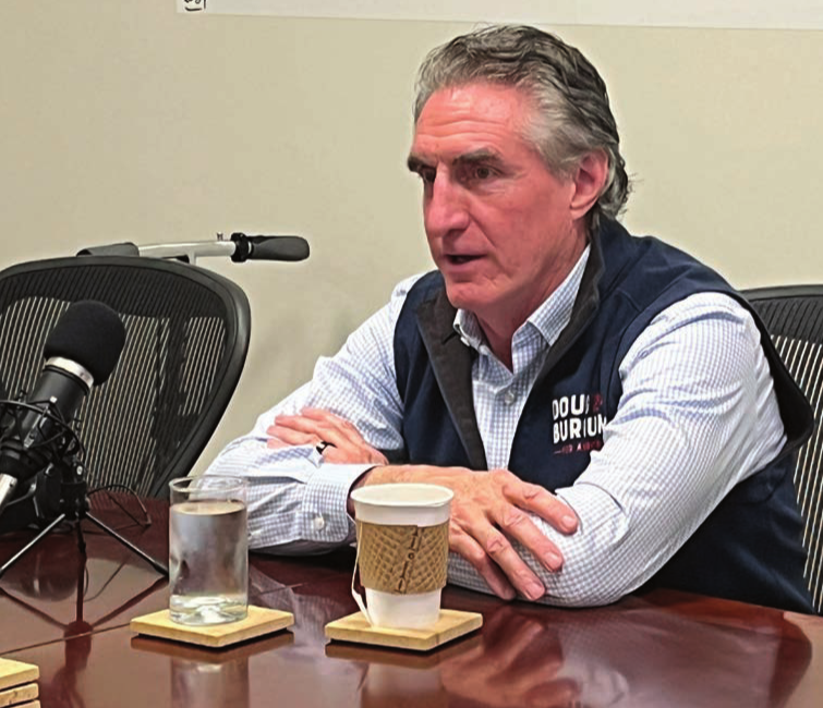 North Dakota Gov. Doug Burgum, who is campaigning for the GOP nominee for president, recently visited NH Business Review to appear as a guest on the Down to Business Podcast: Primary Edition. (Photo by Karen Bachelder) As he continues his longshot bid to become the GOP presidential nominee, North Dakota Gov. Doug Burgum is focusing on the economy, energy and national security.
