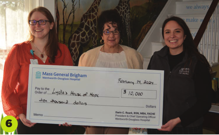 6. Wentworth-Douglass Hospital in Dover has awarded a $10,000 community benefit grant to Lydia’s House of Hope (LHOH), a 365-day residential program for homeless women and children, many of whom have experienced extreme poverty, domestic violence and substance use disorder. Meaghan Heusler of Wentworth-Douglass, left, presented a check on Feb. 14 to LHOH leaders Theresa Tozier, middle, and Maria Benzekri, right.