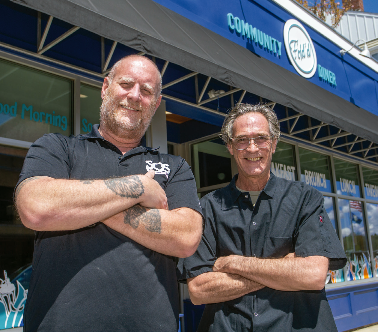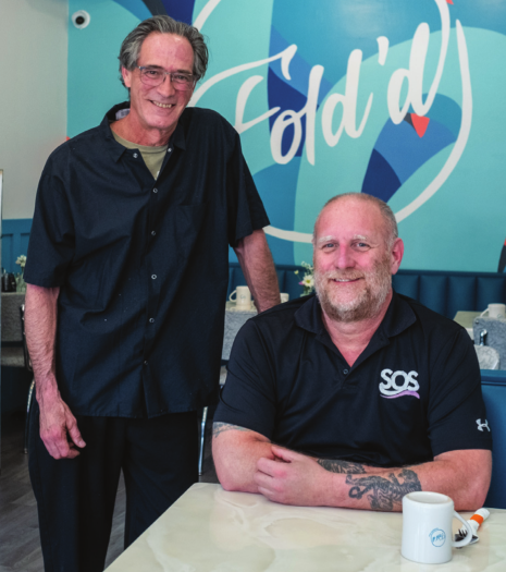 John Burns, middle left, SOS Recovery Community Organization executive director, and Fold’d Community Diner Chef and GM Mark Segal, top and middle right.