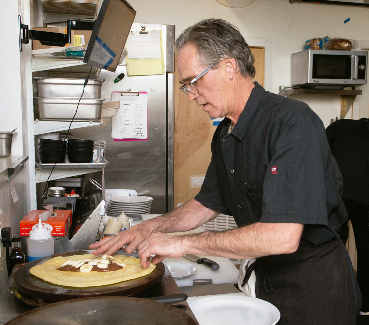 Working at the diner has a different pace from a fine restaurant, but is just as challenging, and that’s exactly what he was after.