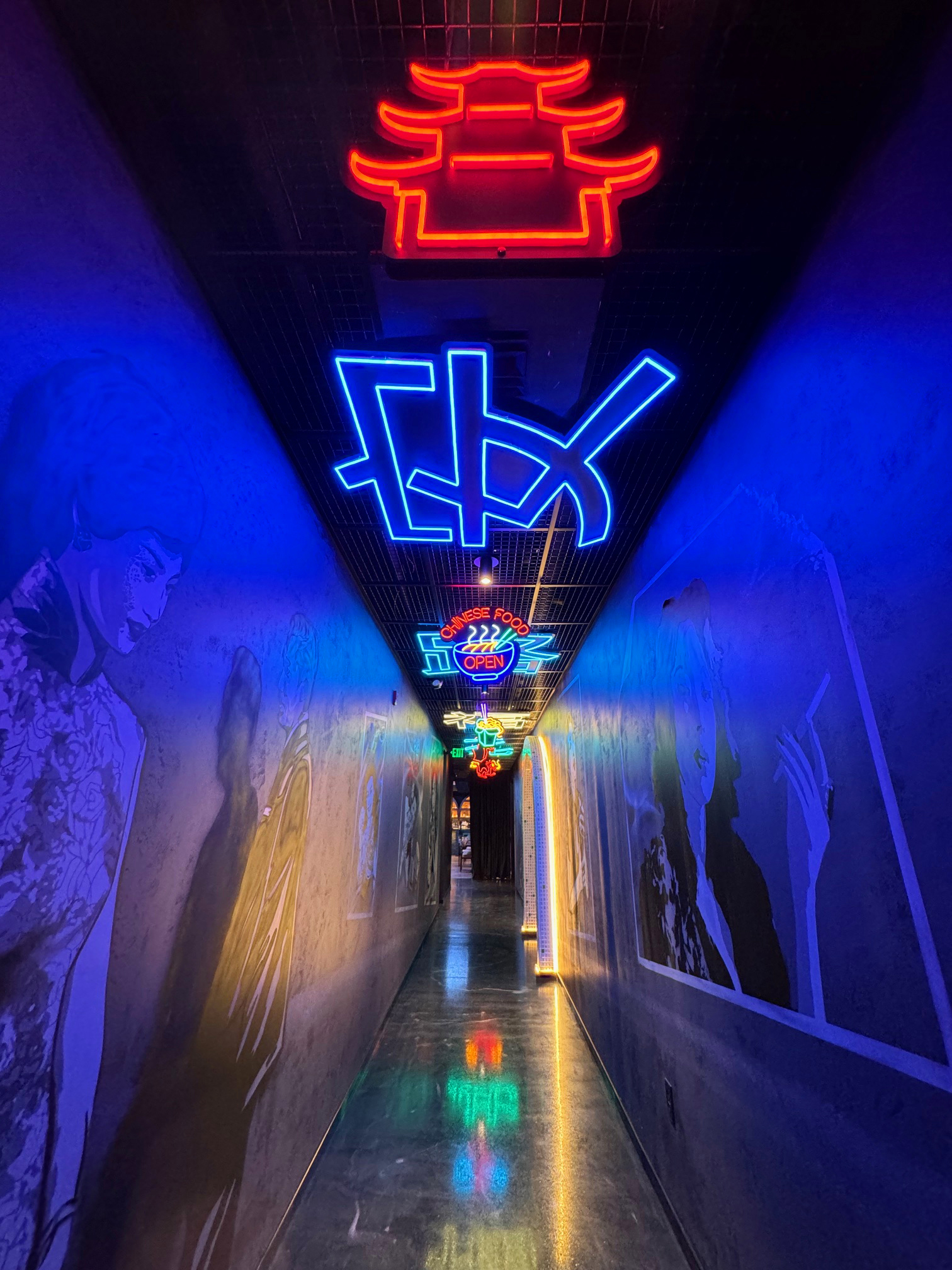 a hallway lined with Mahjongg tiles, patrons enter into the dining