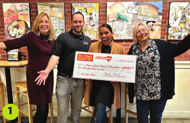 1. In October, Manchester restaurant Mr. Mac’s held its annual Mac Gives Back fundraiser, donating $1,000 each to the Boys & Girls Club of Manchester, shown, and the Manchester Police Athletic League in early November. The fundraiser pledges a donation of $1 for every Take & Bake order of Mr. Mac’s macaroni and cheese made every October.