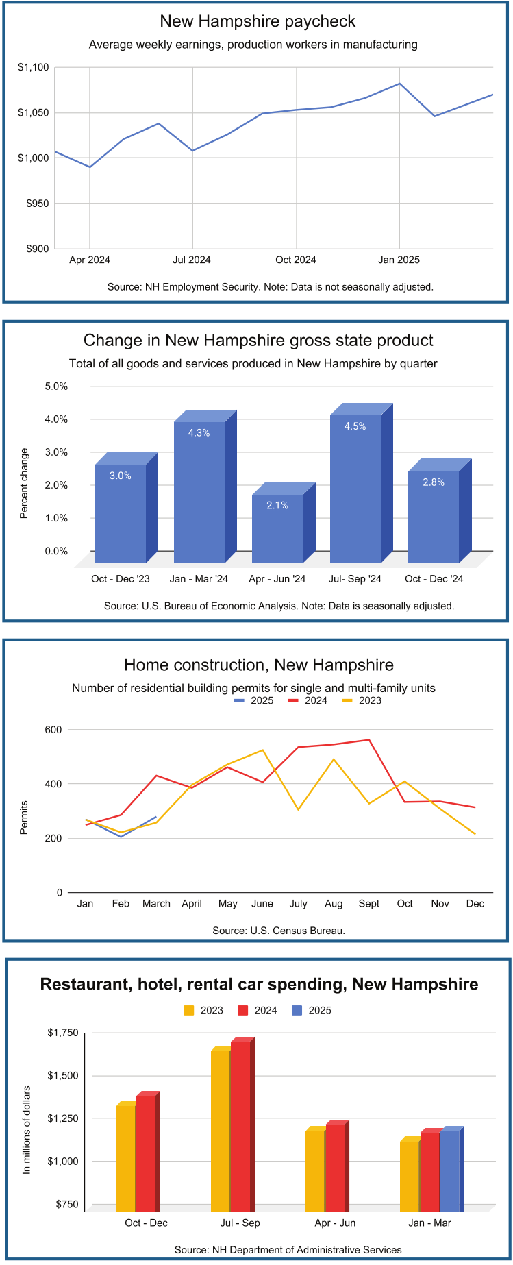 The New Hampshire economy appeared to be slowing but still growing in the months leading up to President Trump’s Liberation Day trade announcements, according to economic data compiled by NH Business Review.