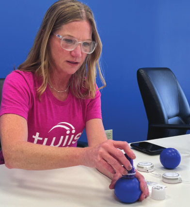 Kate Eyre Sandfoss, director of direct-to-consumer marketing at Sequel Med Tech, was among eight employees with type 1 diabetes who celebrated April 30 for being among the first people to use twiist, which uses advanced technology to manage insulin intake. (Courtesy photo)