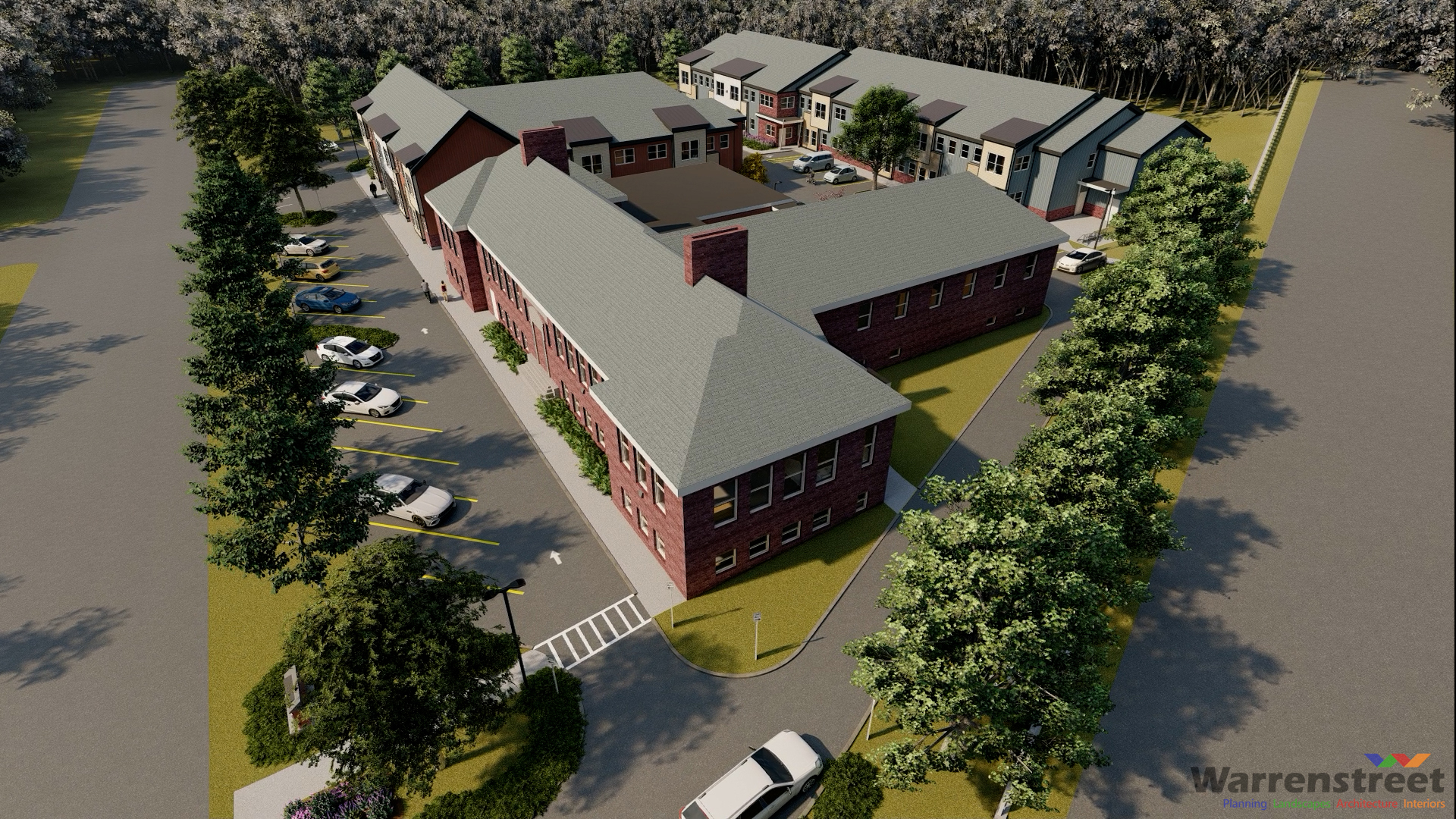 This project to bring more housing units to Keene by repurposing an old school and adding new construction has involved two phases, each supported by separate CDFA block grants. (Courtesy of Warrenstreet Architects)