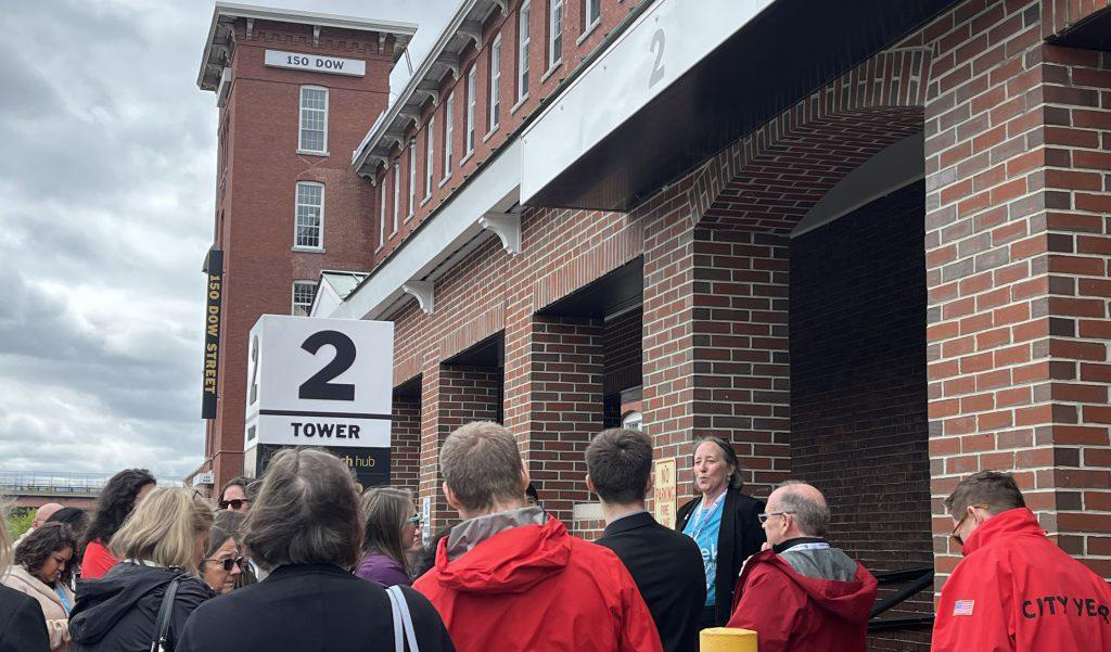 Christy Johnson, blue shirt, ARMI director of education and workforce, leads a tour at 150 Dow St., in the Millyard as part of the ReGen Valley Tech Hub Community Update on May 23. The Millyard building is home to ARMI as well as other biofab industry functions. (Photo by Maureen Milliken) The message at a May 23 event made it clear: ReGen Valley Tech Hub’s evolution is about more than the biofabrication industry, but about the community pulling together on many levels.
