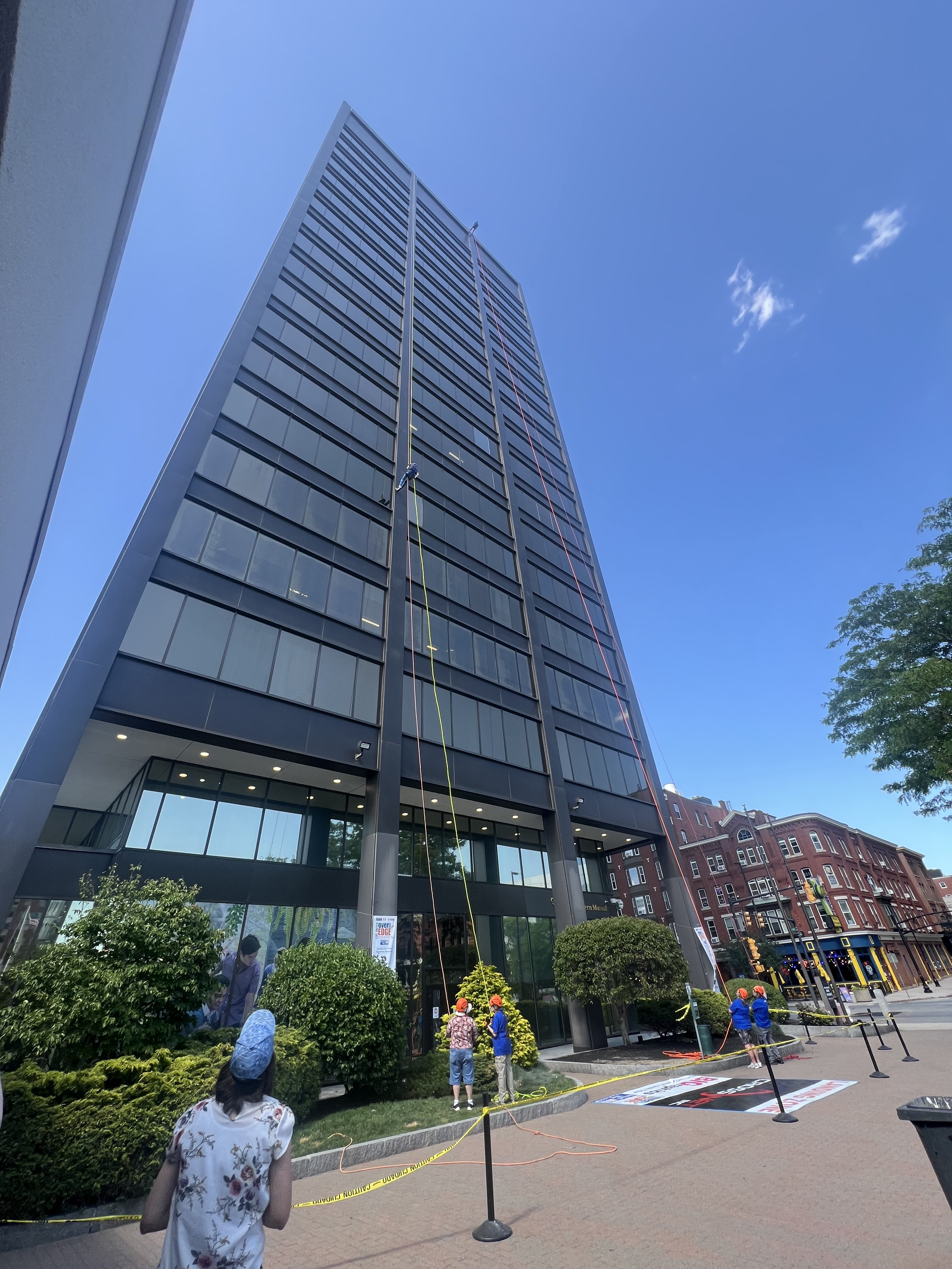 “Some are just one person participating on a team, and some are full teams. We had a nine-person team today, which is the largest team that we’ve actually ever had,” said Apfelberg, who has rappelled down the Brady Sullivan Plaza three times but not this year.