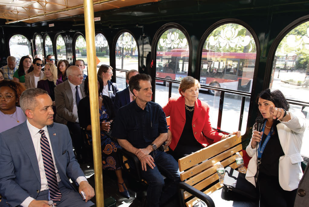 U.S. Sen. Jeanne Shaheen listen to Jodie Nazaka, economic development