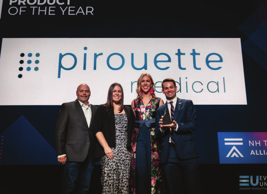 From left: Matt Harris, director of product design, GSSI (the 2023 Product of the Year recipient); Julie Demers, executive director, NH Tech Alliance; Lisa King, senior account executive, Cross Insurance, POY Committee chair; and Conor R. Cullinane, co-founder and CEO, Pirouette Medical.