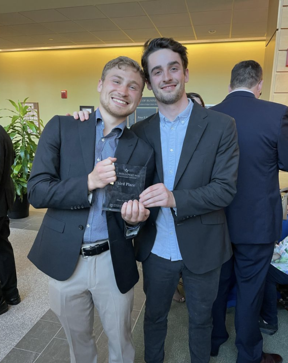 Co-founders Jack Potvin and Gerry receive third place in the P.J. Holloway Prize competition at the University of New Hampshire, their alma mater. (Courtesy of Project Happy)