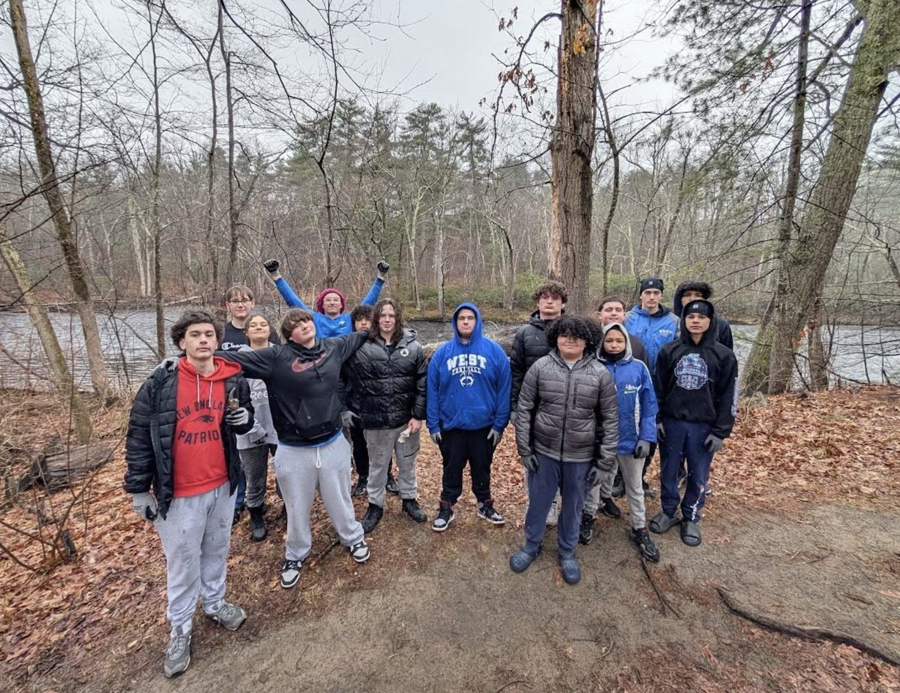 Students in West High School’s football team volunteer to clean up Piscataquog River Park in Manchester after finding the opportunity through Project Happy. (Courtesy of Project Happy)