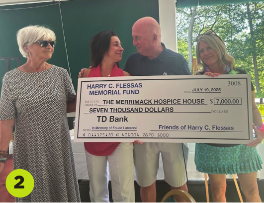 2. Home Health & Hospice Care (HHHC) recently received a $7,000 donation from Glenn Flessas, a longtime supporter, during his annual golf tournament in memory of his close friend, Fouad Laroussi. Fouad’s wife, Kathy, and daughter, Alisha, requested that the funds be directed to the Community Hospice House in Merrimack, where compassionate end-of-life care is provided to patients and their families across southern New Hampshire. From left: Kathy Laroussi, Alisha Laroussi, Glenn Flessas and Paula Telage, director of philanthropy at HHHC.