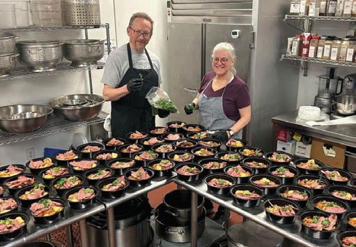 Volunteers at Gather prepare meals using surplus quality ingredients picked up from food industry donations.