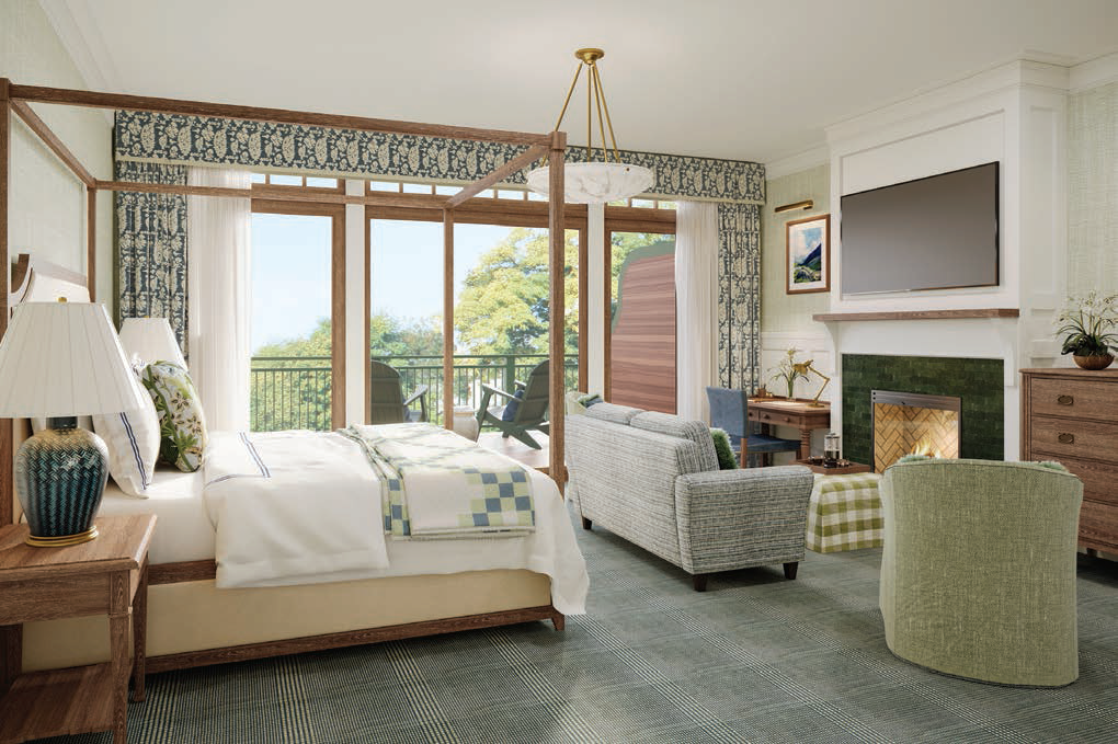 The Lake Estate, which includes 18 suites, was designed by Samyn-D’Elia Architects of Holderness, NH, and is modeled after a grand private lake estate. Amenities include multiple dining options, a wedding and events center, a 5,000-square-foot spa, two private beaches, four pickleball courts and a tennis court, an apple orchard and a flower garden.