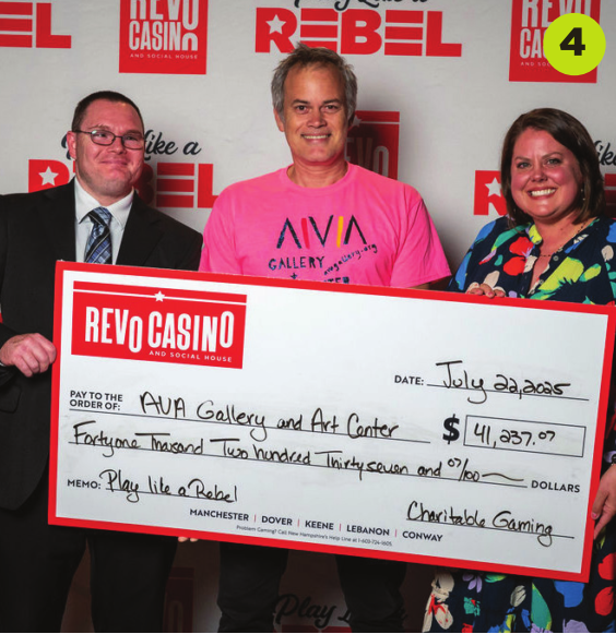 4. REVO Casino’s 10-day charity gaming event in Lebanon raised $41,237.07 for AVA Gallery & Art Center at 11 Bank St., Lebanon. AVA Gallery is a nonprofit in the Upper Valley aimed at encouraging creativity through the arts. The donations will support free programs like art classes for seniors, family drop-in sessions, and art experiences for those with disabilities. A segment of the funds will go toward maintenance of AVA’s 50,000-square-foot facility.