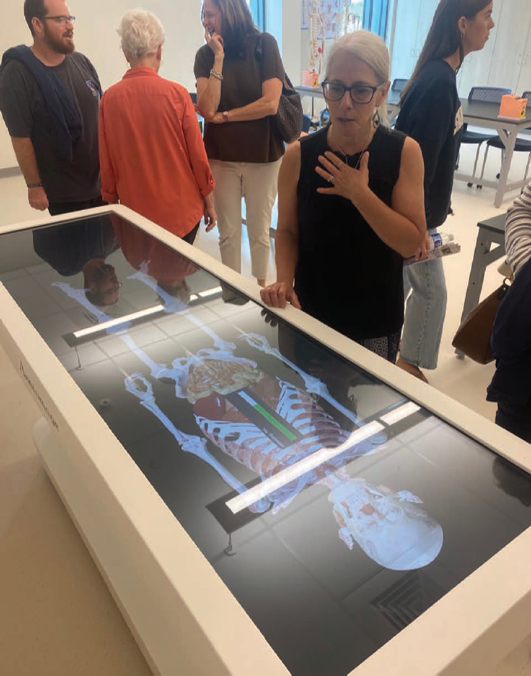 Judy Follo, Saint Anselm College teacher of anatomy, shows the anatomage table, which provides layered images of cadavers for nursing students to view.