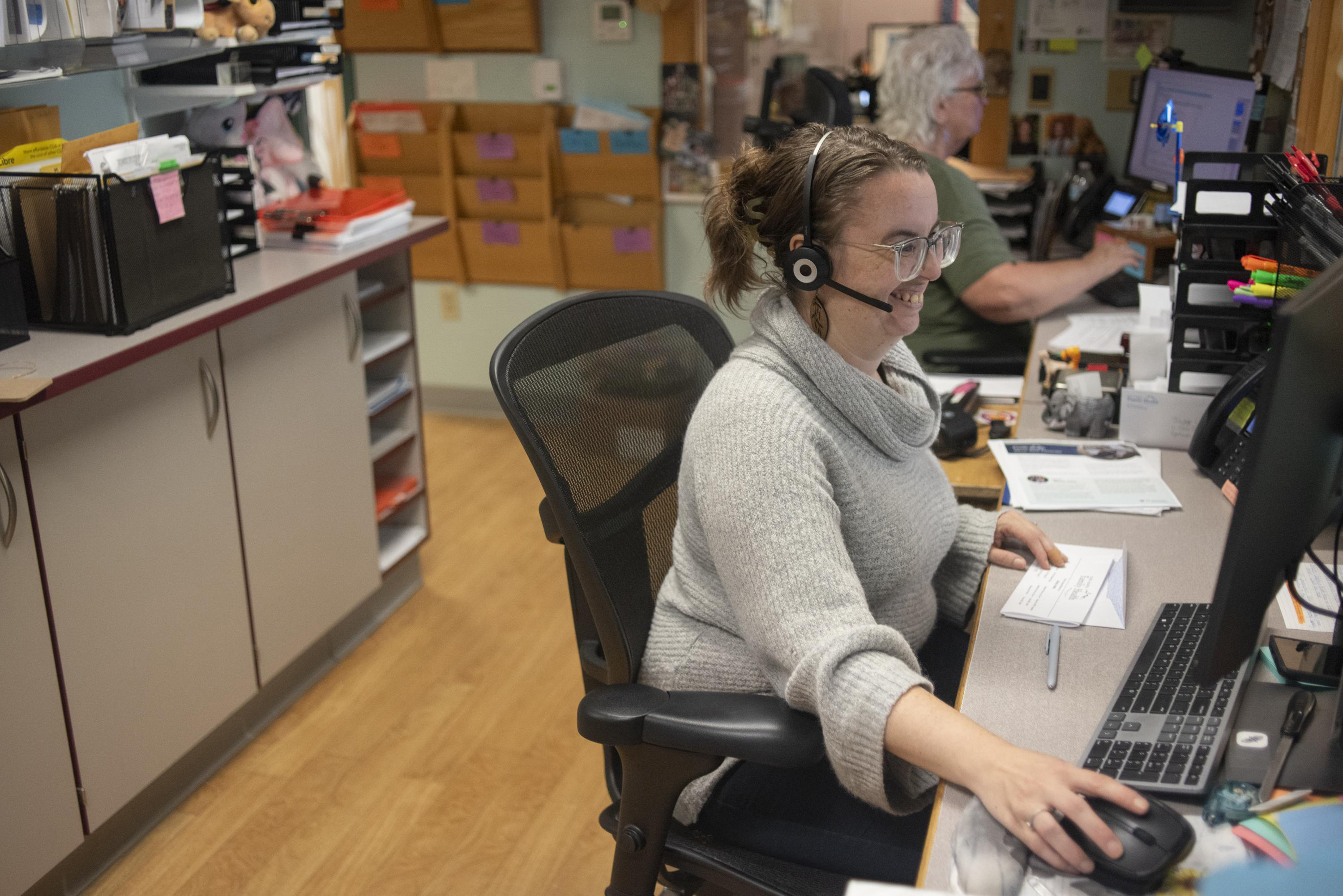 Team coordinator Shannon Young speaks with a patient over the phone at the Coos County Family Health Service clinic in Berlin on Thursday, Sept. 18, 2025.