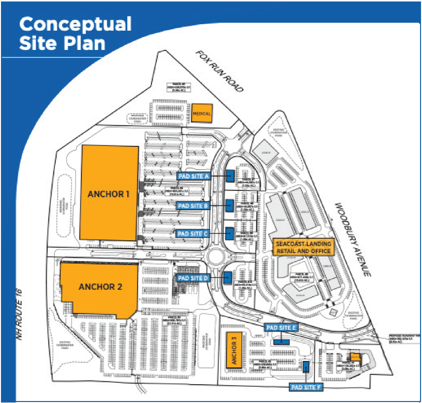 Unlike the current Fox Run, Seacoast Landing is not envisioned as an enclosed mall with long concourses and a food court. The buildings are separated, each with dedicated parking.
