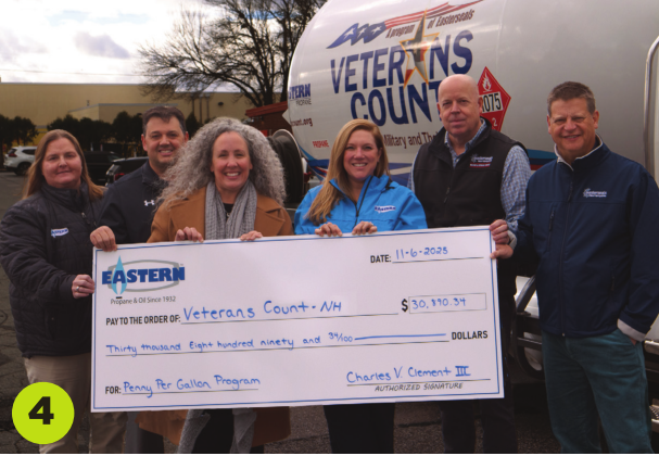 4. Eastern Propane & Oil has donated $30,890.34 to Veterans Count, according to a press release. Veterans Count is a program of Easterseals New Hampshire. Eastern’s donation represents one penny for every gallon of propane delivered by its five Veterans Count delivery trucks over the previous year. The donation will directly help Veterans Count provide essential services and care coordination for New Hampshire service members, veterans and their families.