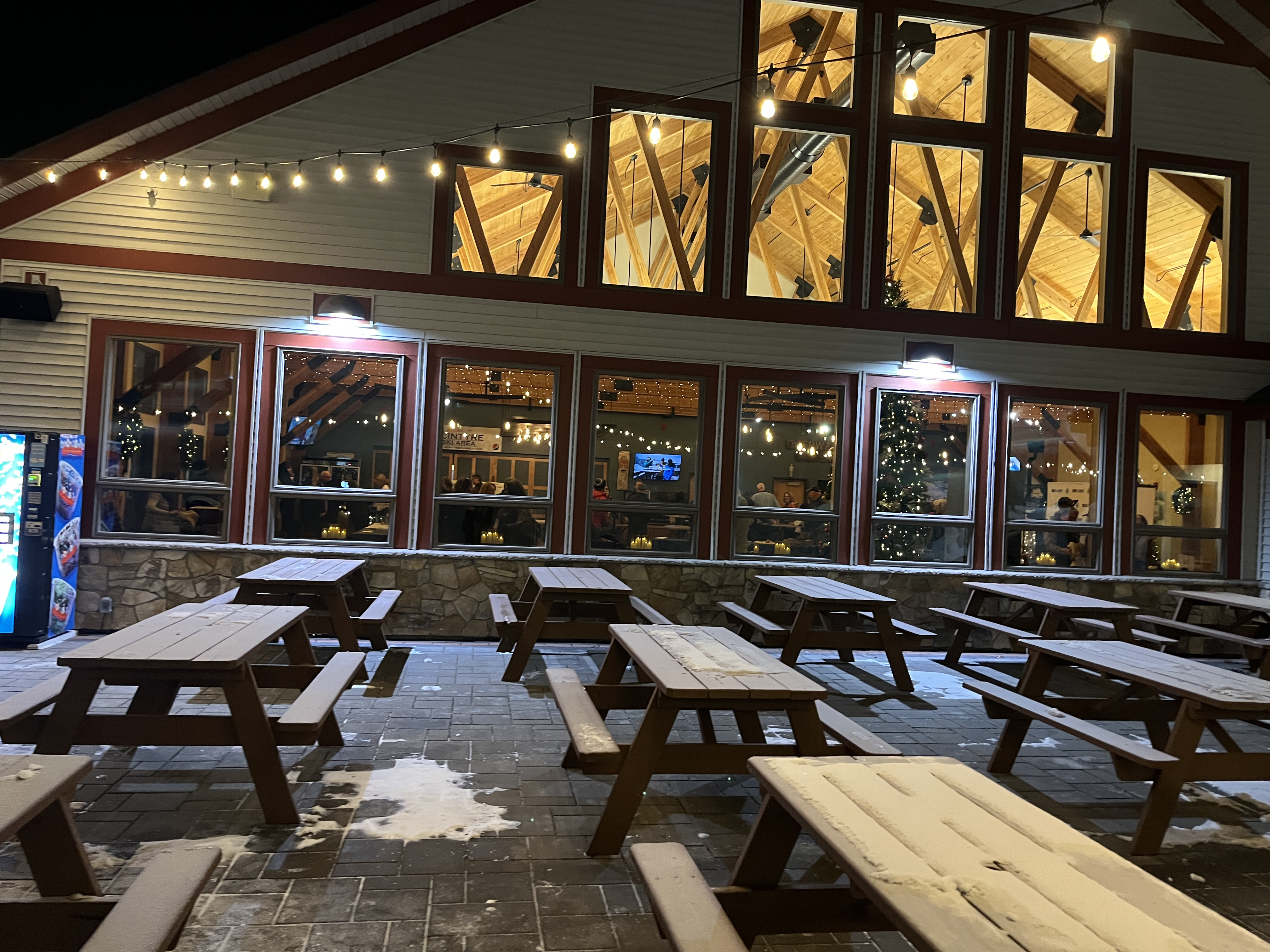Representatives from ski resorts from around the state gather inside at McIntyre Ski Area on Dec. 8 while outdoor picnic tables and fire pits go unused.