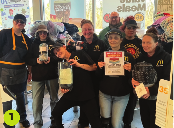 1. Matt Masson of Manchester, general manager of the McDonald’s at 907 Hanover St. in Manchester, is holding a winter blanket donation drive at the restaurant to help the unhoused. Donations will be shared with the Manchester-based nonprofit Families in Transition, which serves those experiencing homelessness. The drive was held in honor of McDonald’s 1 in 8 Day.